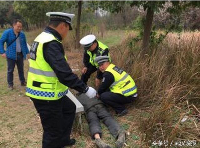 情况危急。肖之峰立即带领3名辅警前往查看,只见一名中年男子趴在杂草中一动不动,呼喊也不应答,通过鼻息检查仍有呼吸。