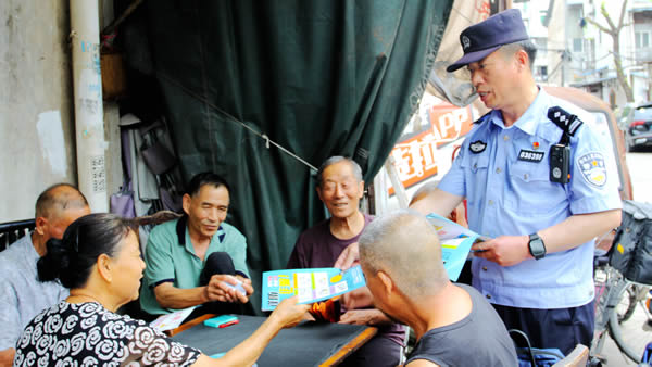 7月15日,湖北省武汉市公安局东西湖区分局长青街派出所华星社区警务室组织警力,冒着高温酷暑深入片区居民区、村湾及商户,帮助居民群众及400多家商户“破解”电信网络诈骗骗局,精心帮助居民群众及商户护住血汗钱及经营资金安全。