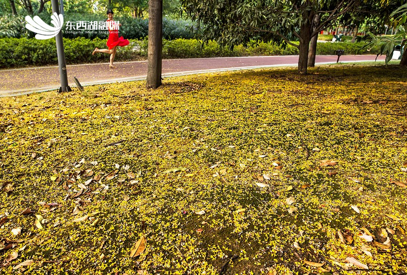 武汉园博园北区的落花满地