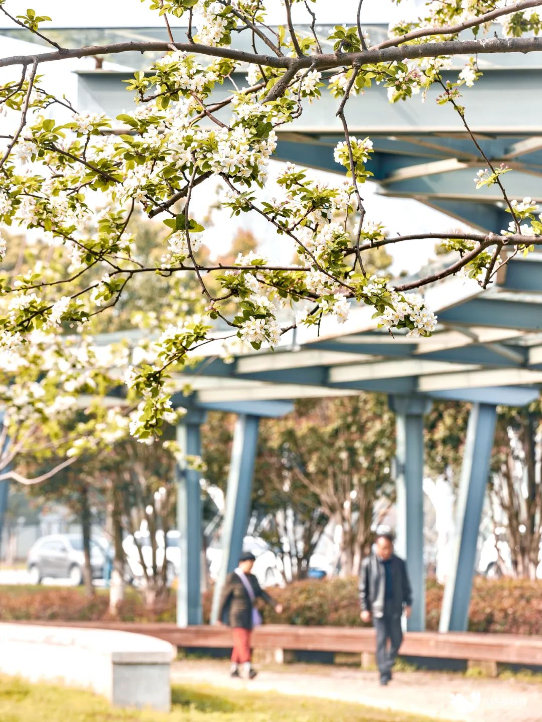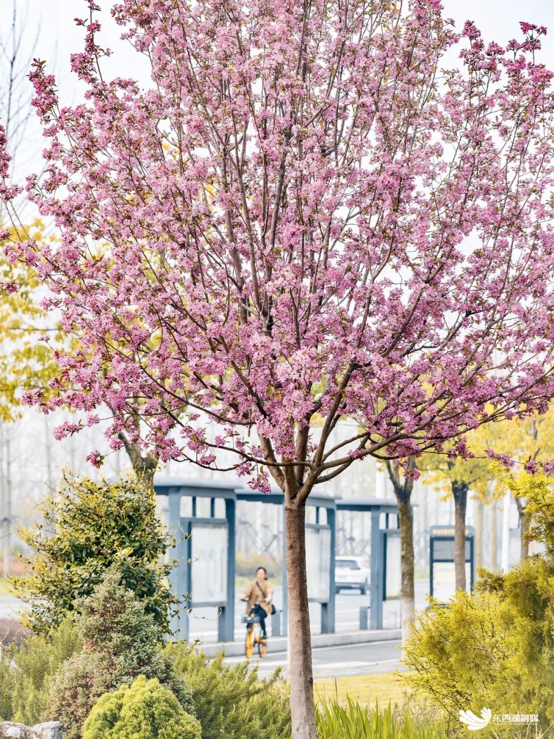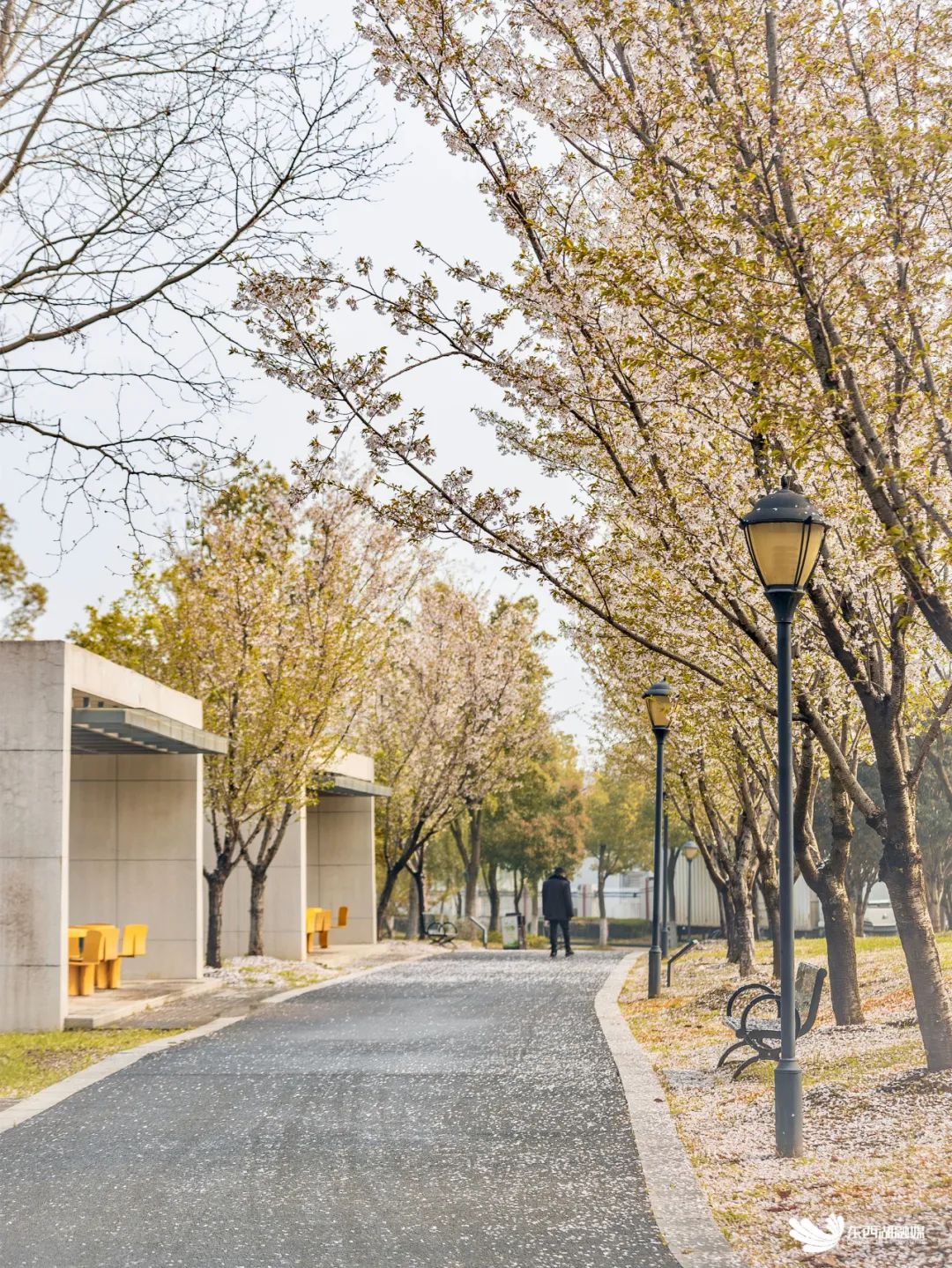 相约春天赏樱花,是东西湖每年春天的约定。 临空港大道沿线,樱花如期绽放,粉色花朵簇拥成海,与驿站相映成趣。 樱花轻盈纤薄,不禁风吹雨打,正是这份脆弱,成就了“樱花雨”的绚烂。 花鸟风月,四季推移,万物皆是一期一会。相约赏樱,不只是欣赏一树的花开花落,更是感受一季的时光流转。 花期临近尾声,在镜头里追一场樱花雨,留住今年这一抹淡粉色的记忆。