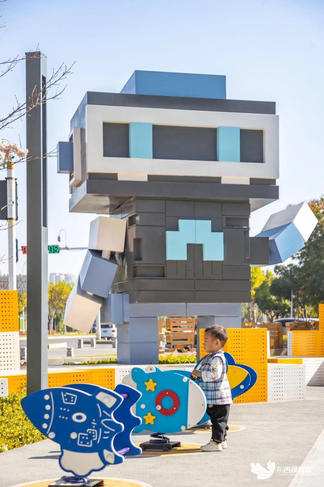 整体配色好看的积木机器人很出片!附近还有东方马城、万科高尔夫球场、武汉园博园、金银湖国家城市湿地公园。