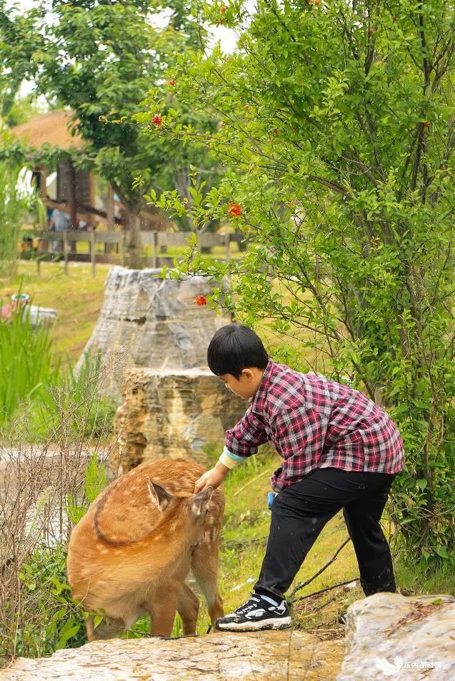 记者看到在很多天幕前的草地上都可以看见梅花鹿在静静地吃着草,有小朋友靠近,梅花鹿也不会跑开而是温顺的让人抚摸,这一刻仿佛进入一个童话世界,让人内心充满温暖。