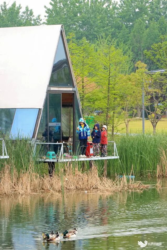“雨天露营别有一番趣味,特别是听着雨声,看着鸭子从泛起阵阵涟漪的湖中游过,让人感觉特别放松!”来自汉口的陈女士介绍,五一前就计划来鹿儿在·欢乐营地游玩了,虽然今天下雨,但是园区内四处可见的梅花鹿,以及可爱的小羊,依然给了他们很大的惊喜。