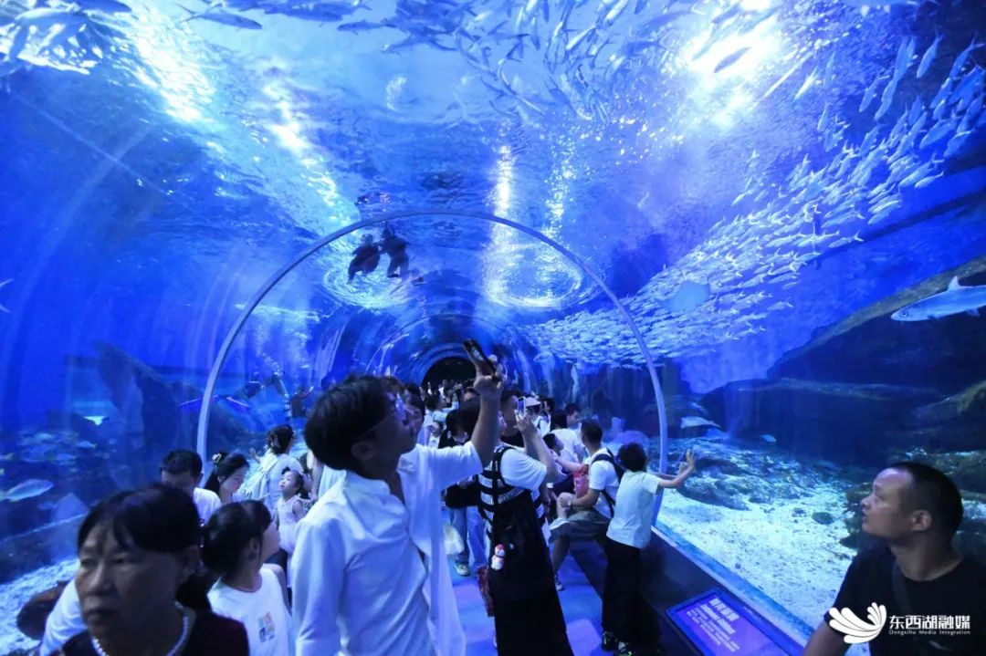 一起漫步180°海底隧道,与万千鱼群共生共游!打卡明星、网红同款海洋大片拍摄地,真的巨美、巨出片!(拍摄时可尽量靠近隧道玻璃,脸部朝向顶部光源,镜头微仰避开人群)除了欣赏“美人鱼”的曼妙舞姿,还能体验“深海”潜水,与鲨鱼等众多鱼群同游,这一趟玩下来就可以忙里偷闲吃个午饭了。