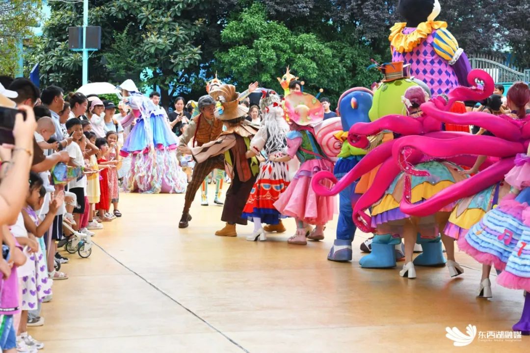 “鲸”奇迎宾秀超燃来袭,魔法师、海洋精灵携手超大杖头人偶欢迎游客的到来,准备开启“夜游”模式。