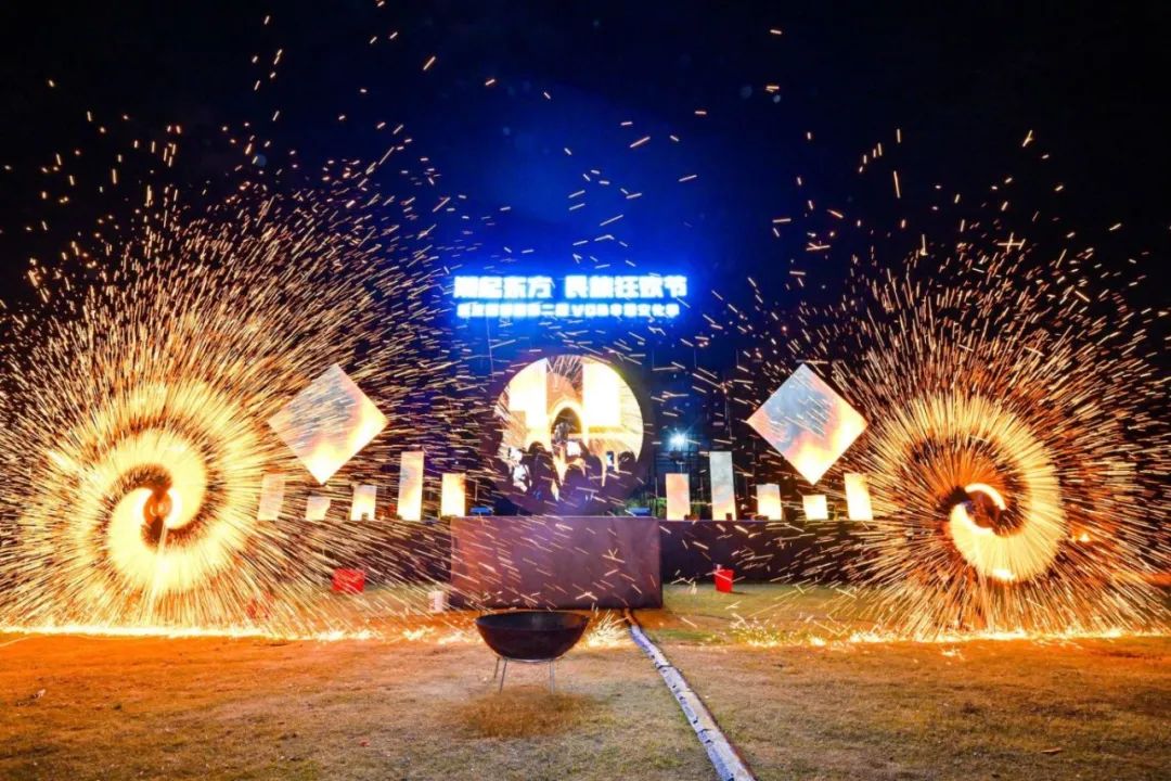 当夜幕降临,灯光璀璨,“潮流东方造”电音之夜让整个场地被绚丽的色彩和动感的光影笼罩。舞台上,电音DJ以高超的技艺和无限的创意,将传统东方元素与现代电音完美融合。古筝、二胡、琵琶等巧妙融入电音旋律中,一场充满激情与活力的视听盛宴让游客久久回味。