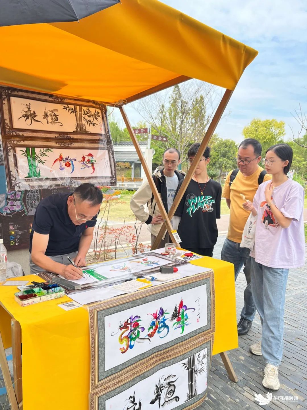 在南京园到杭州园沿线,是“治愈系非遗”民俗体验区,游客可以亲自体验各种非物质文化遗产项目,如对歌、簪花、编织、竹竿舞等,还有专业的手工艺人现场指导,让大家充分了解非遗文化的历史和传承。