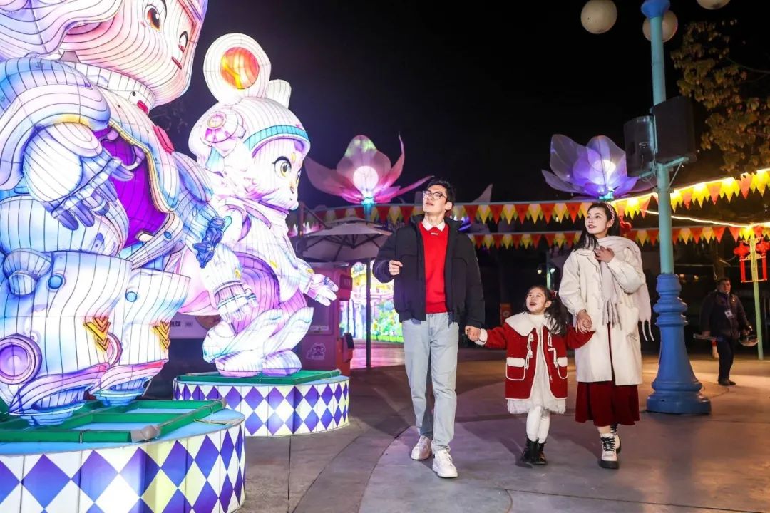夜幕降临,华灯初上,武汉极地海洋公园又呈现出另一番景象。十二生肖花灯齐聚一堂,它们形态各异,色彩斑斓,带着祥瑞与祝福,为游客们送上新春的美好祈愿。巨型水母花灯如梦似幻,光影摇曳间,仿佛将游客带入了一个赛博朋克的奇幻世界,让人流连忘返。