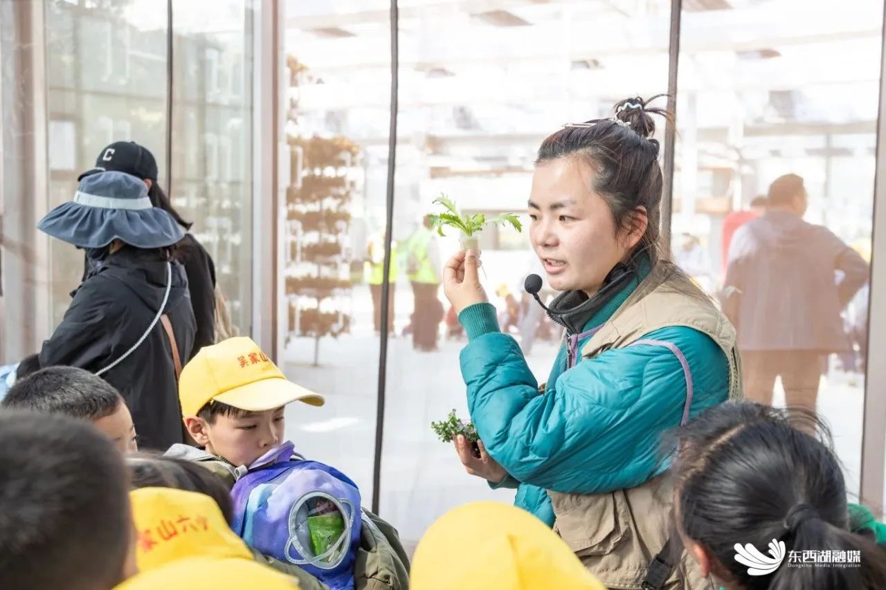 在东西湖区农投集团(下称区农投)植物工厂里,孩子们俯身观察嫩芽破土,指尖轻触叶脉纹路,记录秧苗拔节高度,将课堂搬进郁郁葱葱的"自然实验室"。