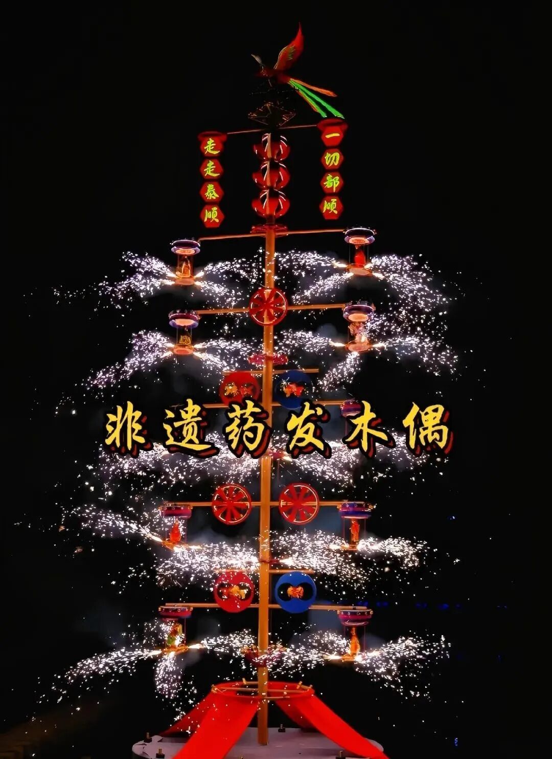 同样令人期待的还有药发木偶。这项将烟花与木偶戏结合的传统技艺,曾在《藏海传》等影视作品中惊艳观众。此次,表演者将《西游记》《陈十四》《封神榜》等传统剧目的神话人物等制成木偶造型,混于烟花之中燃放。在烟花的带动下,焰光中木偶凌空飞舞、犹如火树银花上轻盈旋转,尤为夺目。