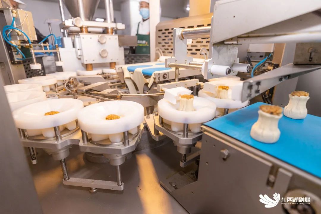 在成品制作车间,和面、压面、注馅、成型、摆盘,自动化生产的烧麦“像花一样漂亮”。烧麦机则是巴比食品与设备厂家联合研发,经过5年反复调整,才设计出来的标准化烧麦花型,同时实现烧麦由手工到自动化生产的转变。