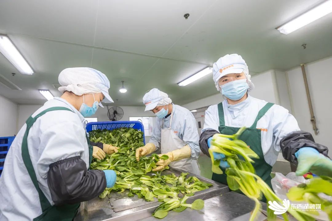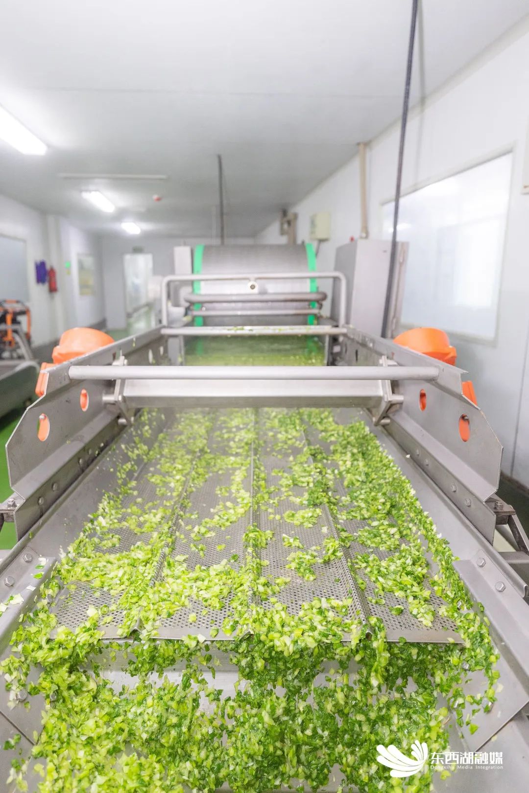 人工逐一挑拣、机器切片、鼓泡清洗、高温漂烫、常温冷却、2道低温预冷,在青菜切丁之后脱水之前还要再次清洗......记者在生产车间看到,光青菜加工产线,就设置有6道清洗程序,在保证青菜清脆口感的同时,充分洗净泥沙去除农残确保食品安全。