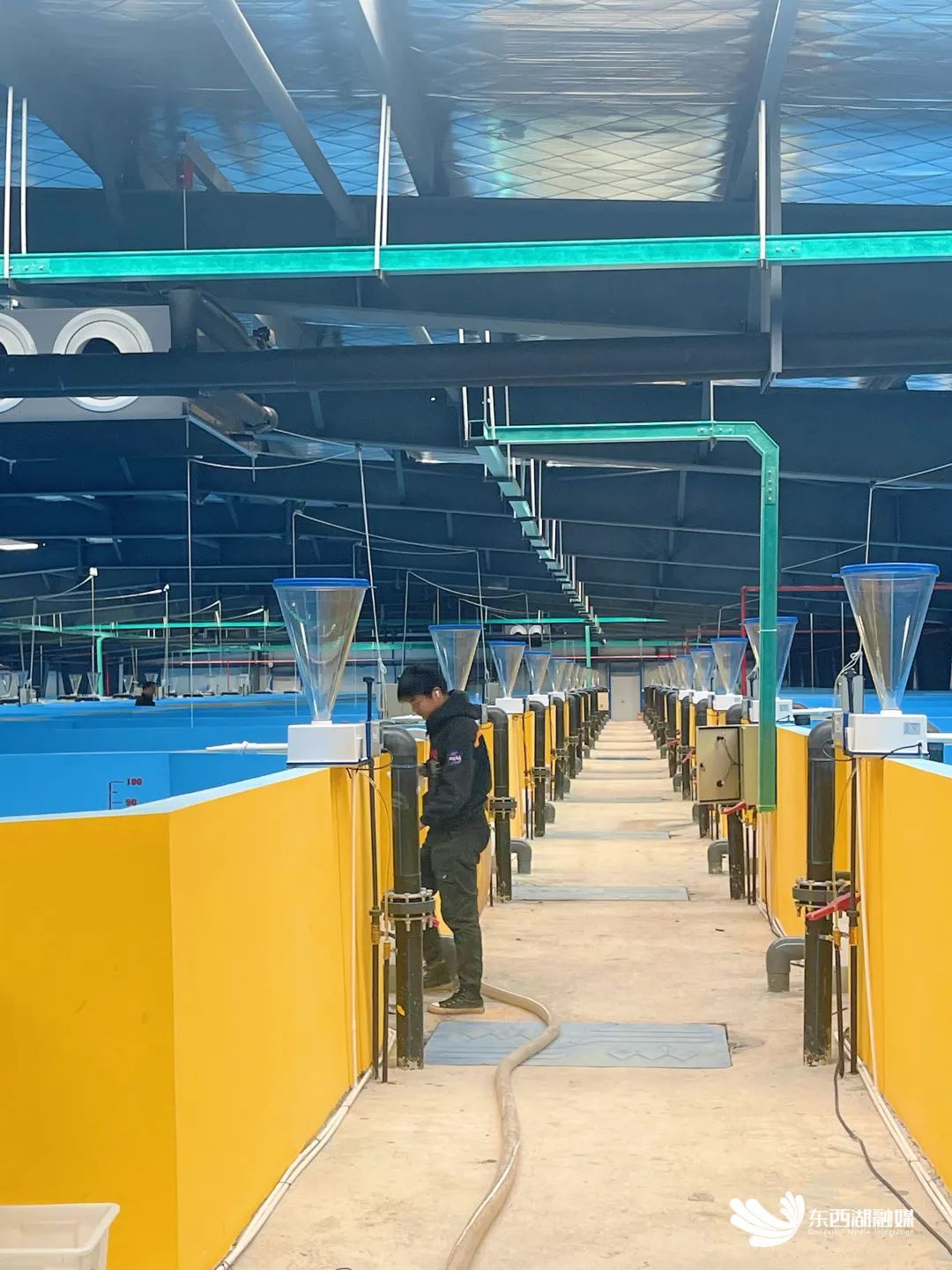 基地通过循环水养殖工艺流程,让污水排放时,通过微滤机,对大颗粒物进行过滤,随后进入生物净化池,对氮、磷等有害物质进行处理,并利用超滤系统及活性炭系统净化水质,最终实现海水循环使用。