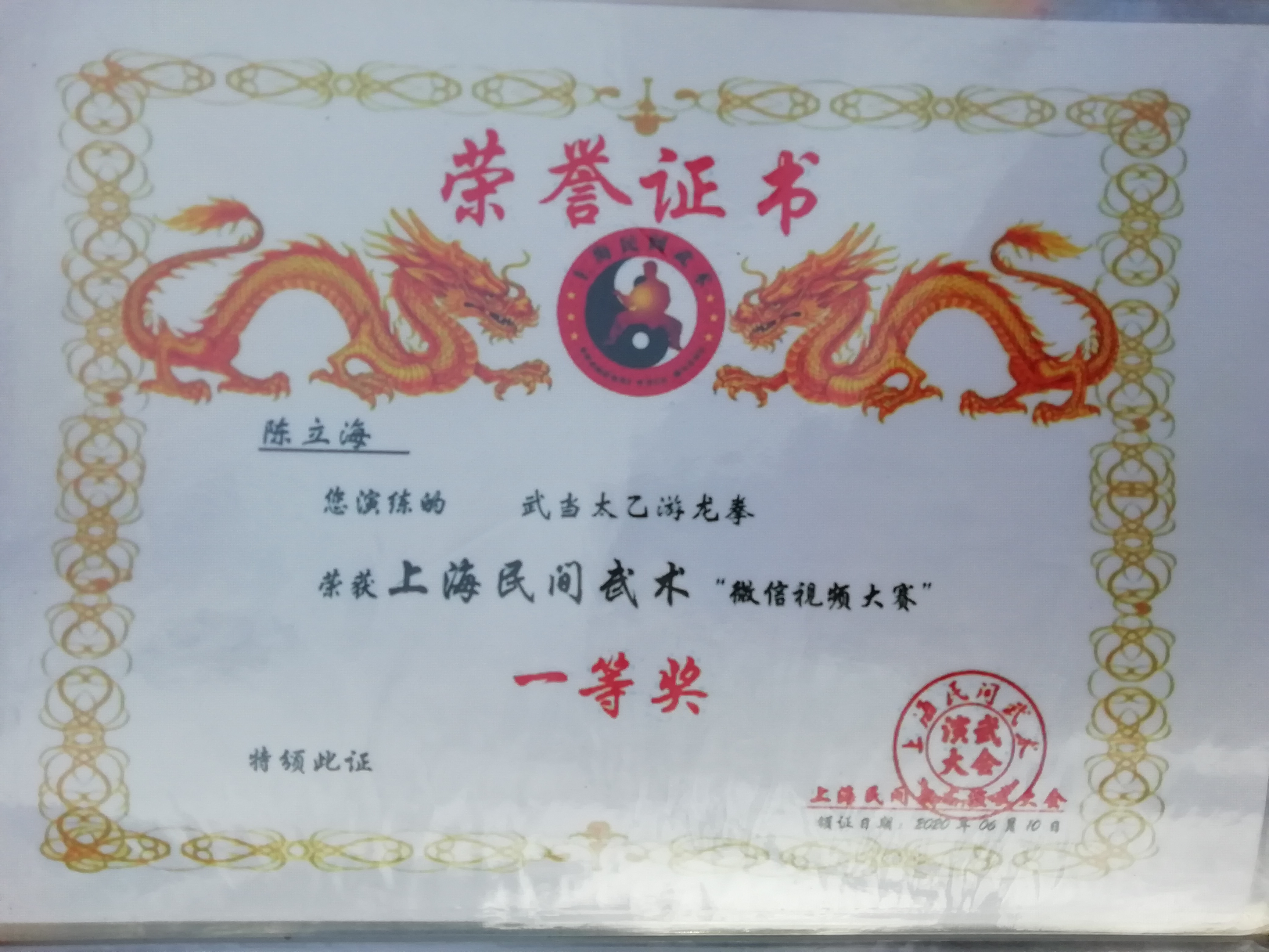 2006年何老师因工伤提前退休后,定居吴家山,经常在吴家山附近练太极拳,修养身体,喜欢武术的吴家山居民闻讯而来,这其中就有东西湖区退休干部陈立海。陈立海以前在老年大学学习过太极拳,真正使他脱颖而出的却是武当游龙拳。据陈立海介绍,他是跟何文斌老师学习的游龙拳,已经有六七年了,虽然陈立海大何老师几岁,但是见到何老师总是主动打招呼。陈立海非常勤奋,多次参加武汉、香港等地太极拳比赛,2019年11月,陈立海参加第八届武当国际演武大会获游龙拳组一等奖。2020年6月参加上海市民间武术视频大赛获游龙拳一等奖。