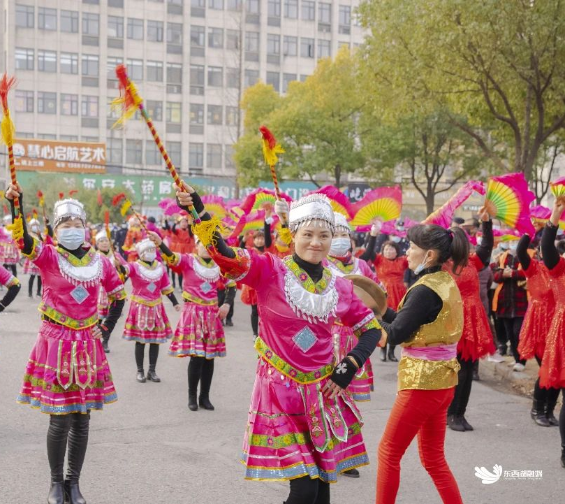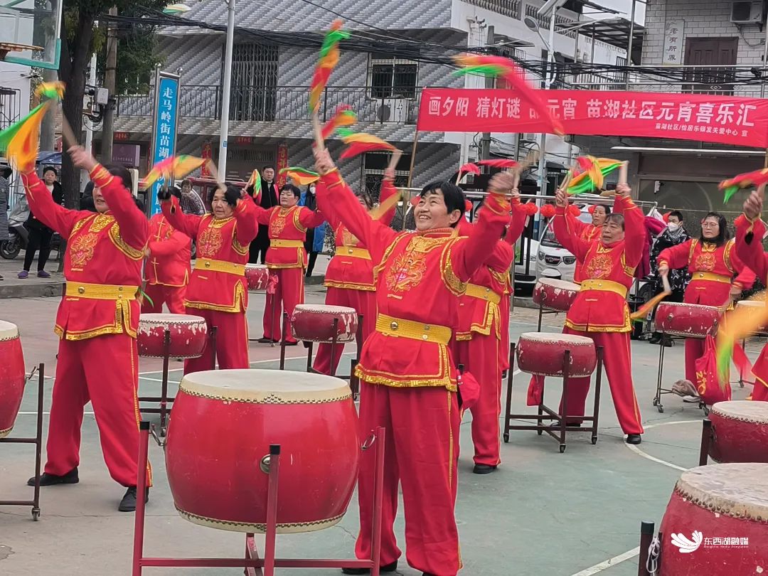 走马岭街苗湖社区活动现场喝彩声不断。身着靓丽服装的群众演员们敲起锣、打起了鼓,锣声清脆碰撞,鼓点接踵而至,在场居民报以阵阵热烈的掌声。