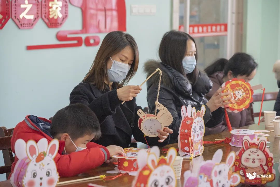 径河街官塘角社区处处张灯结彩,居民们动手制作兔灯笼、猜灯谜,红彤彤的灯笼高高挂起,五颜六色的谜语纸条迎风飘扬。目光所及皆是“中国红”,人们沉浸在喜庆祥和的气氛中。