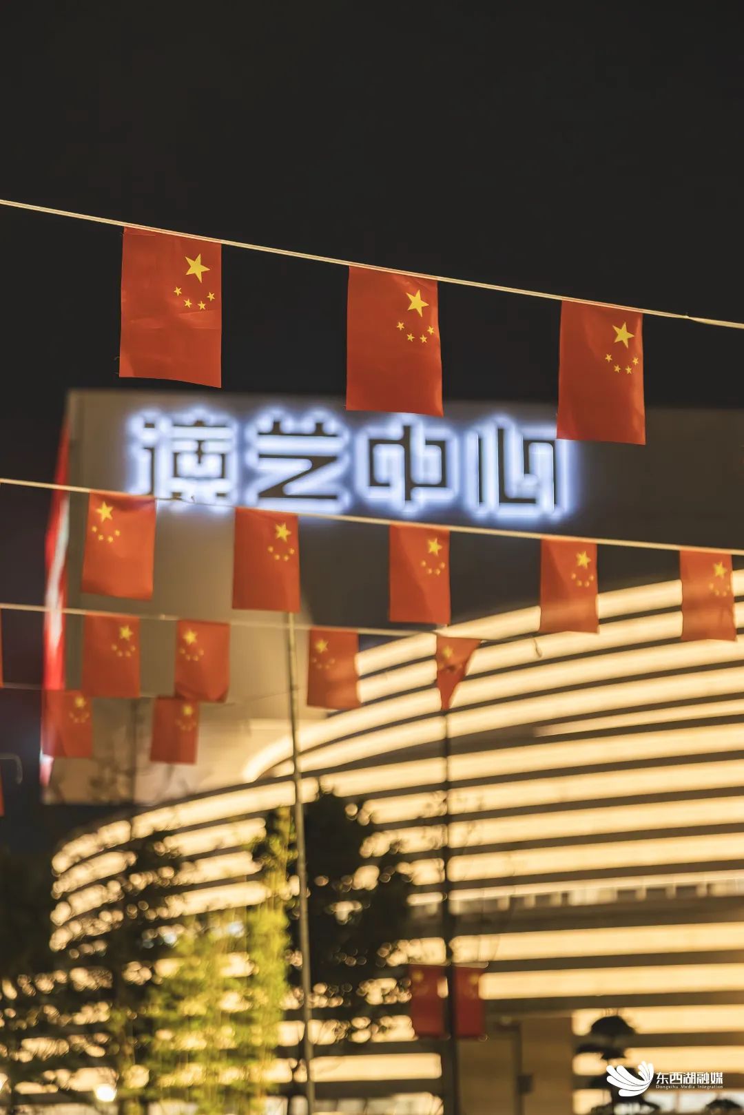 微风熏醉人群,光影悦动在文化中心建筑群,勾勒出迷人夜游图。
