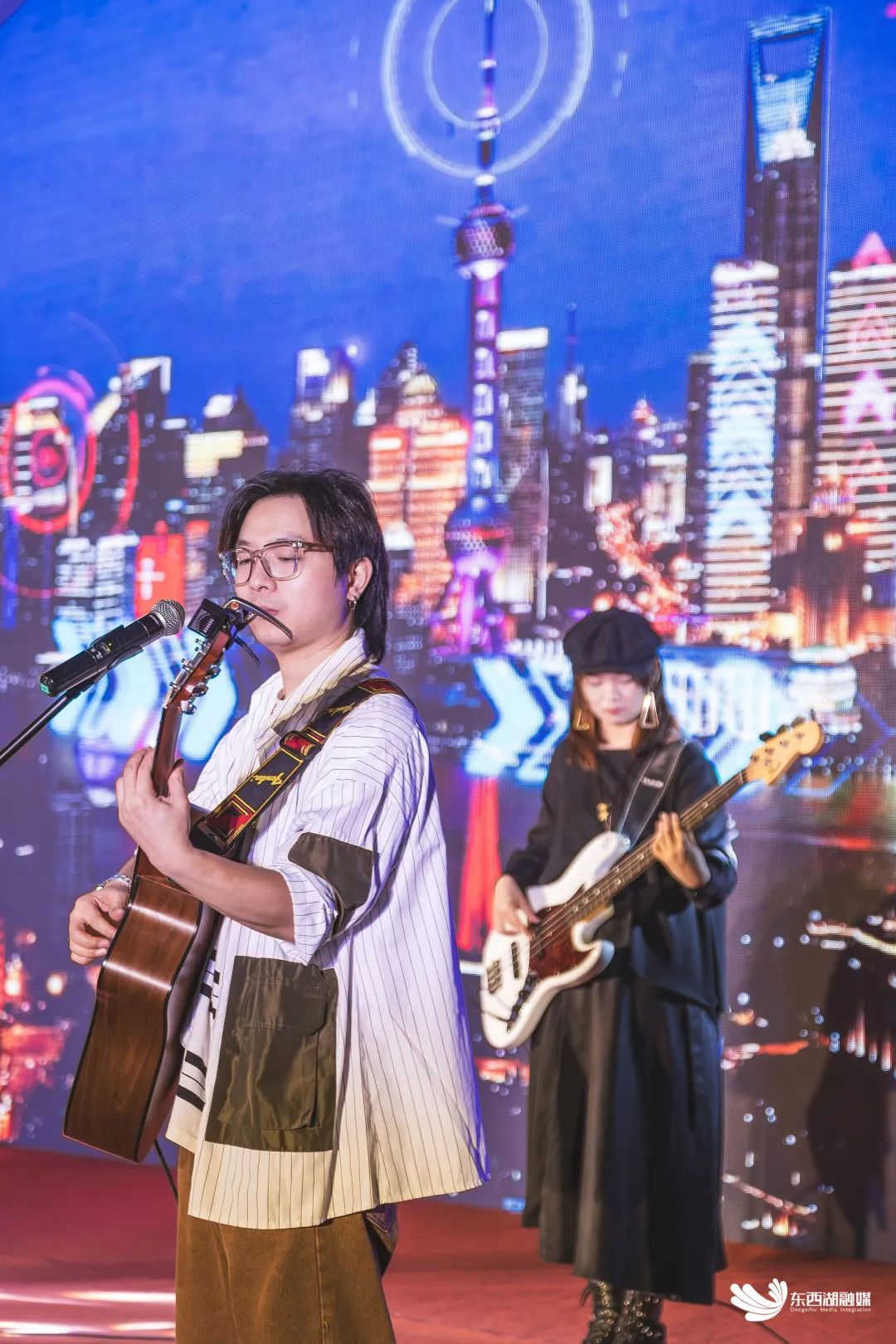 当坦桑尼亚籍大学生李国强和青年歌唱演员徐千惠唱响《黄鹤楼》,夜幕开始降临,2023梧桐雨大学生音乐节决赛“燃”向最高潮!