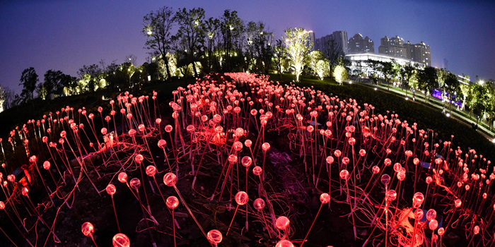 夜幕下的园博园,一朵朵“灯花”点缀着荆山。