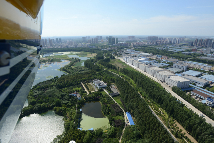飞机掠过柏泉古镇。(图片来源:武汉临空港画册)