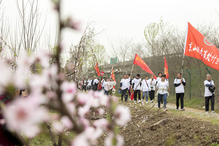健康徒步行活动参与者穿越桃花林。 徐一帆 摄