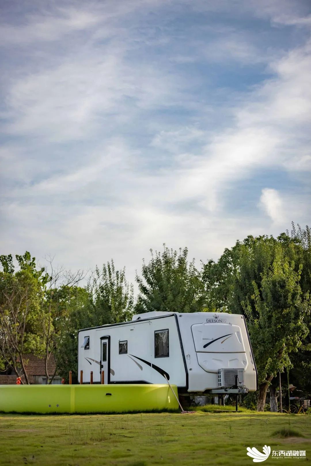 宽敞、漂亮的房车拎包入住,推开车门,满眼望去皆是绿色。