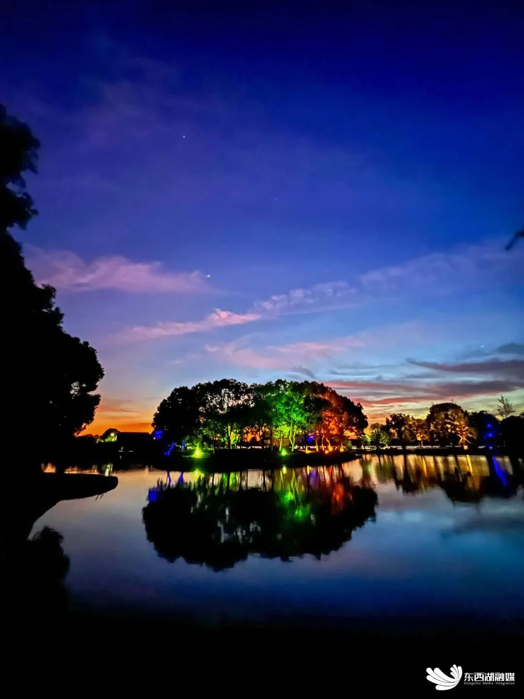 此刻的巨龙湖生态园浪漫得无与伦比,让人舍不得移开步伐,只想在湖边的小木屋里再多住一夜。