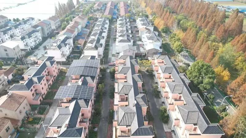屋顶能生“金”。村民崔汉华指着自家楼顶,喜悦之情溢于言表:“安装了42块光伏板,不仅遮风挡雨,每年还能带来2000元的租金收入!”与彭士军一样,豫迁村的50户村民及村委会均实现了“零投入、零风险”安装。项目负责人穆彬鑫介绍,全村共铺设2300块光伏板,总功率达1436kwp,年发电量可达200万度,足以满足566户家庭一年的用电需求,余电外送还能创造集体收益。