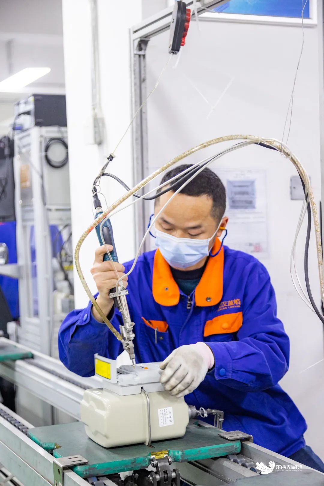 自动化生产线上,测试机正在测试产品
