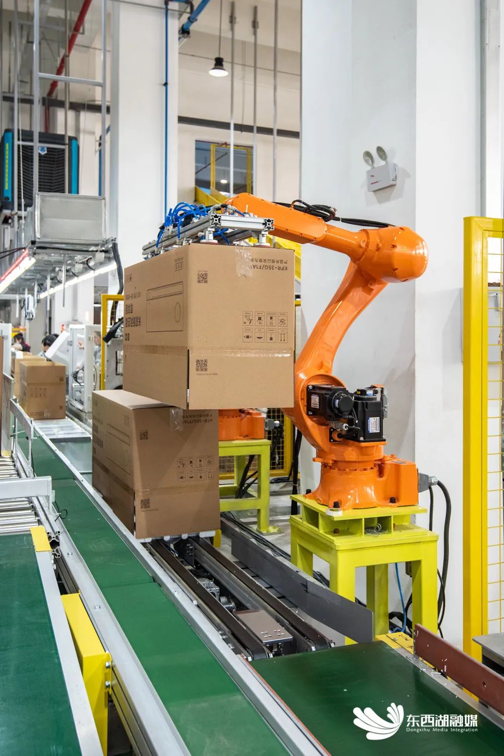 成品包装,机械臂完全替代了人力。