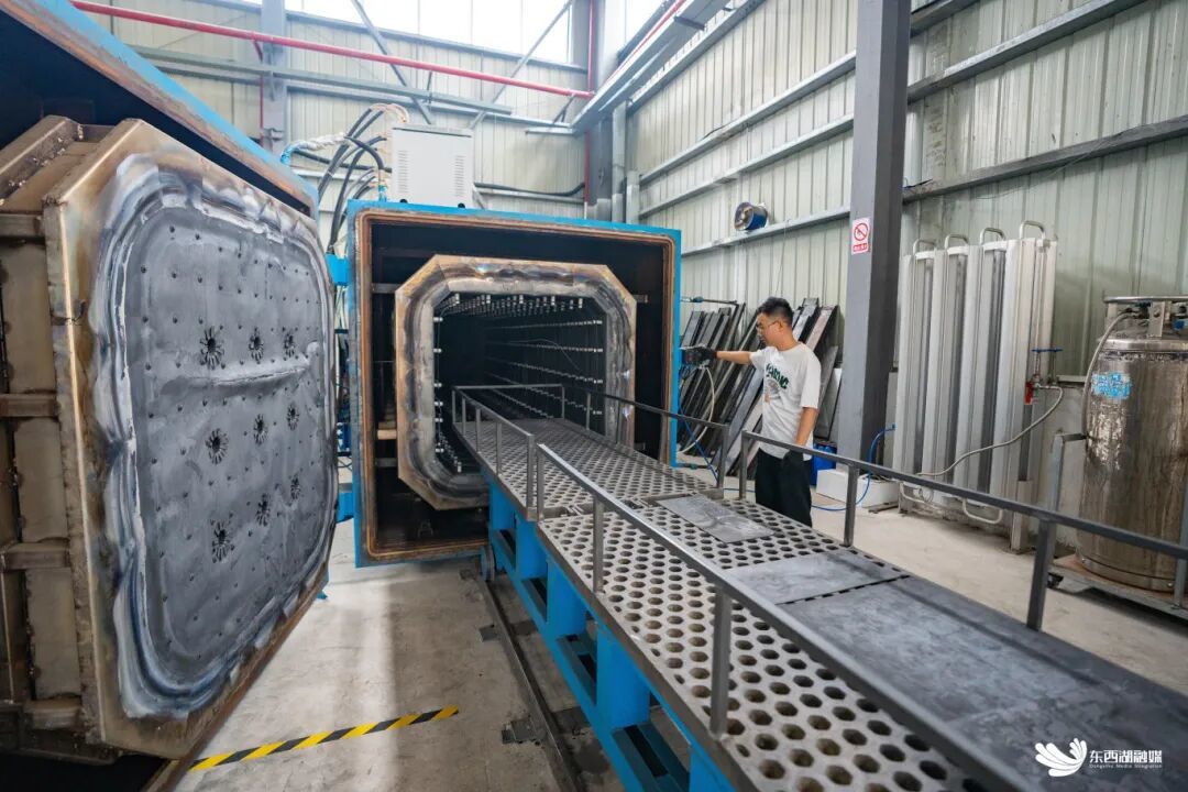 技术人员把卷绕好的变压器铁芯推进真空退火炉。