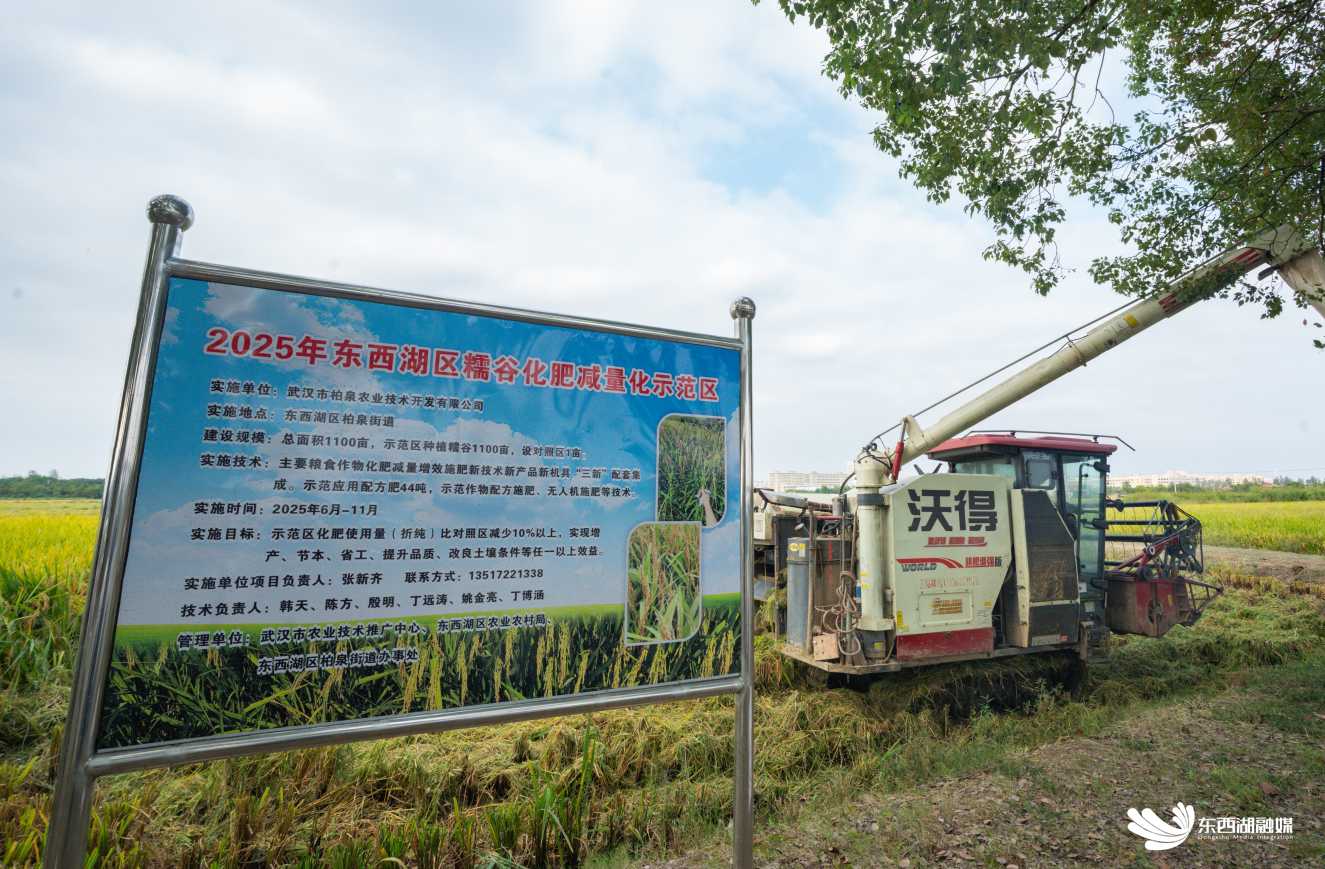 在1500亩糯稻田间,一块“化肥减量示范区”标牌格外引人注目。张恒介绍,这是东西湖区农业农村局设立的科学施肥示范点。
