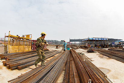 去年8月18日,“当当当”的打桩声在工地上响起,项目工程进入了加速推进的实质性阶段。3月21日上午,记者再次来到项目地看到,300多人的工程队正在加快施工步伐,项目建设如火如荼。挖掘机、压路机和推土机等10多台施工机械正在工地作业,一旁堆放着近300吨建筑螺纹钢材。50米开外,一排主厂房的钢构框架已经基本完成,即将进行墙面和顶板部分的建设,办公楼、辅助车间、倒班房和仓库目前正进行基础施工,也即将封顶。