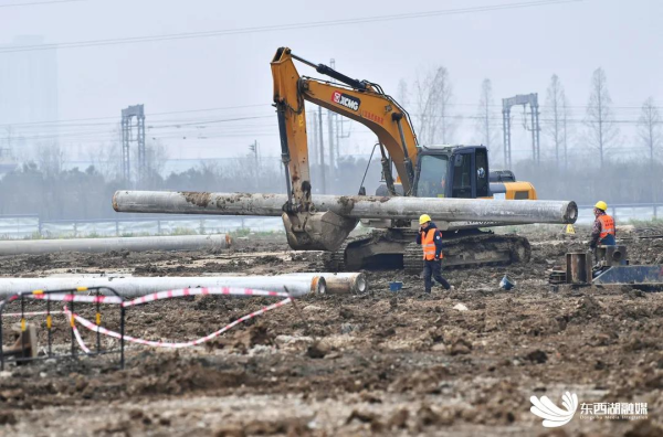 “每天平均打桩4千米,预计这个月底就能完成桩基作业,下个月设备进场。”武汉创维建设发展有限公司副总经理李斌介绍,经过三个月的地质勘测、试桩等准备工作后,今年1月项目施工全面铺开,在此之前,项目更是实现了拿地即开工。