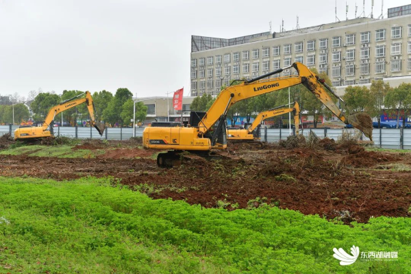 当天上午9时30分,记者在东西湖区新城十二路四环线互通立交段看到,5台挖掘机正同步推进平整场地,3台破除机正在拆除原107国道中间的护栏。国道路段两侧已立起挡板,进行打围作业。