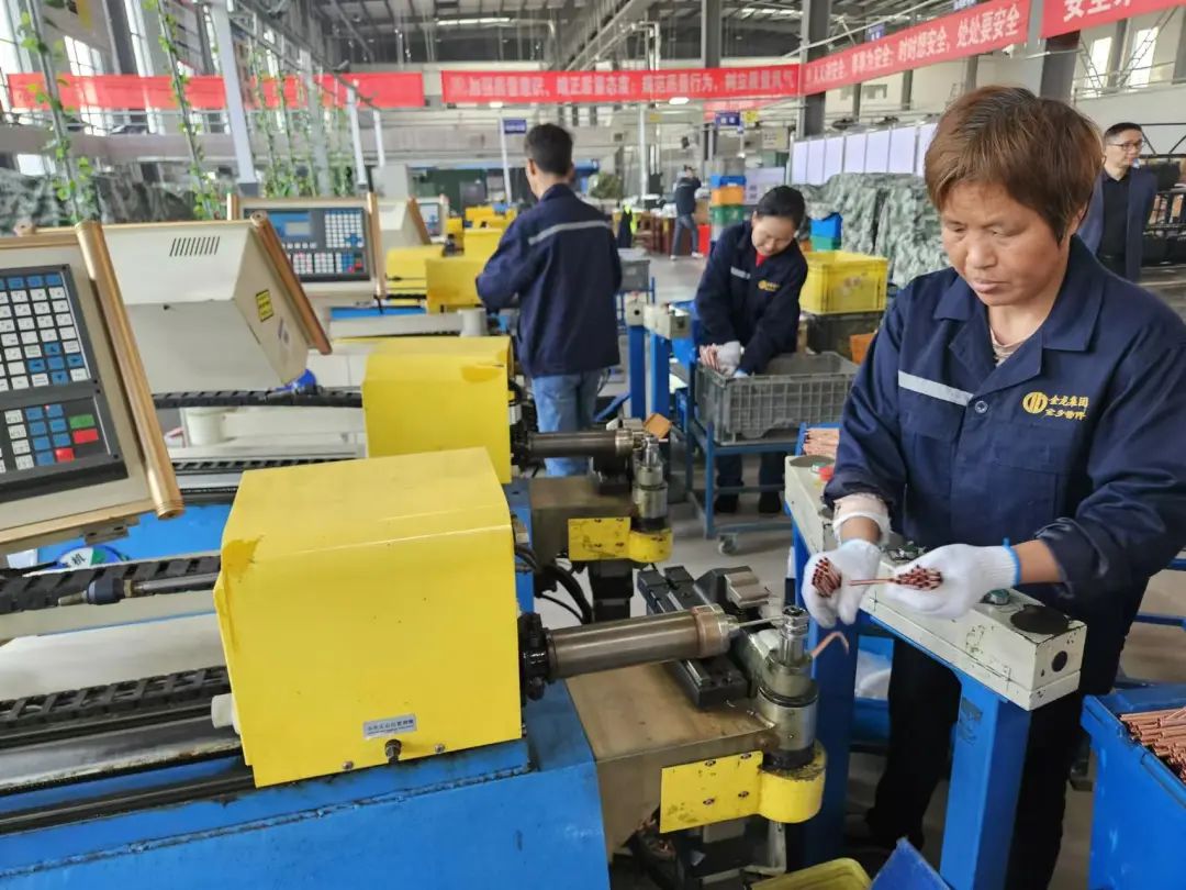 TCL空调重要供应链企业武汉金翔精密管件有限公司工人正在加紧生产。记者张勇军 摄