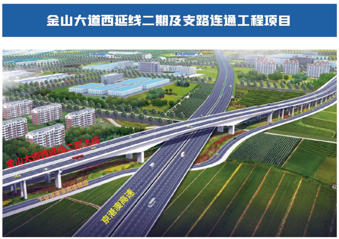 包括金山大道西延线二期主线(起高桥五路,西至兴工八路)东、兴工十路(北起东吴大道,南抵107国道),水产路,垸湖路。项目匡算总投资15亿元,预计2024年竣工。