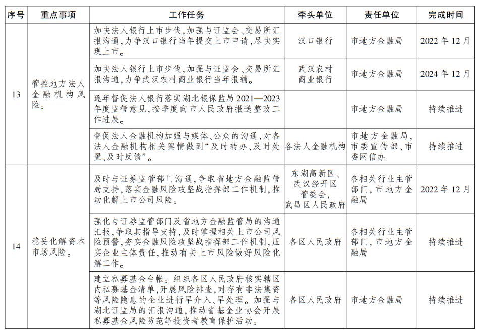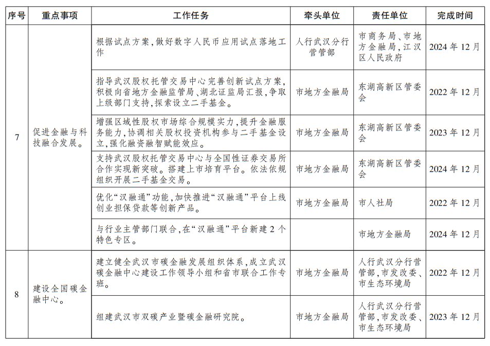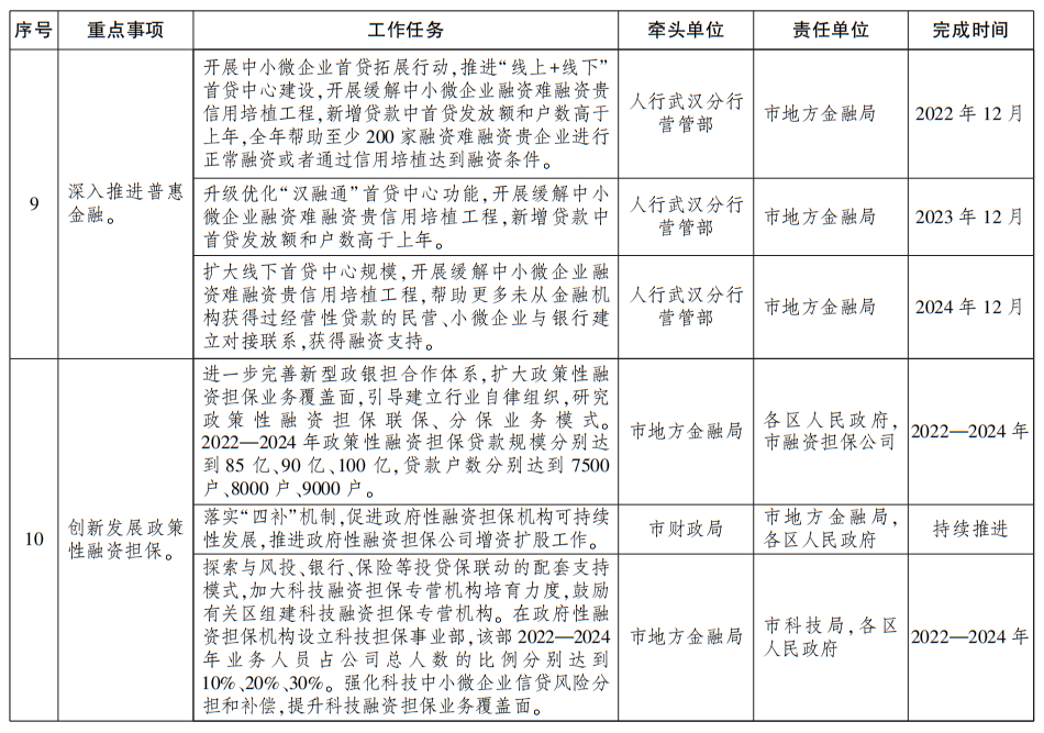 附件:武汉市金融工作三年行动方案(2022—2024年)任务分解表