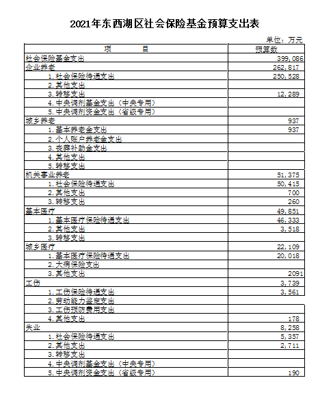 2021年东西湖区社会保险基金预算支出表