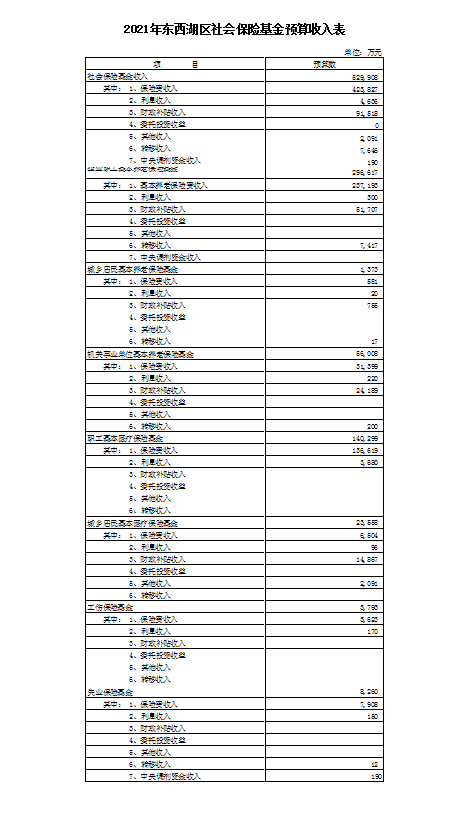 021.2021年东西湖区社会保险基金预算收入表.xlsx