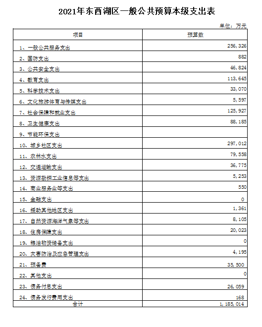 2021年东西湖区一般公共预算本级支出表