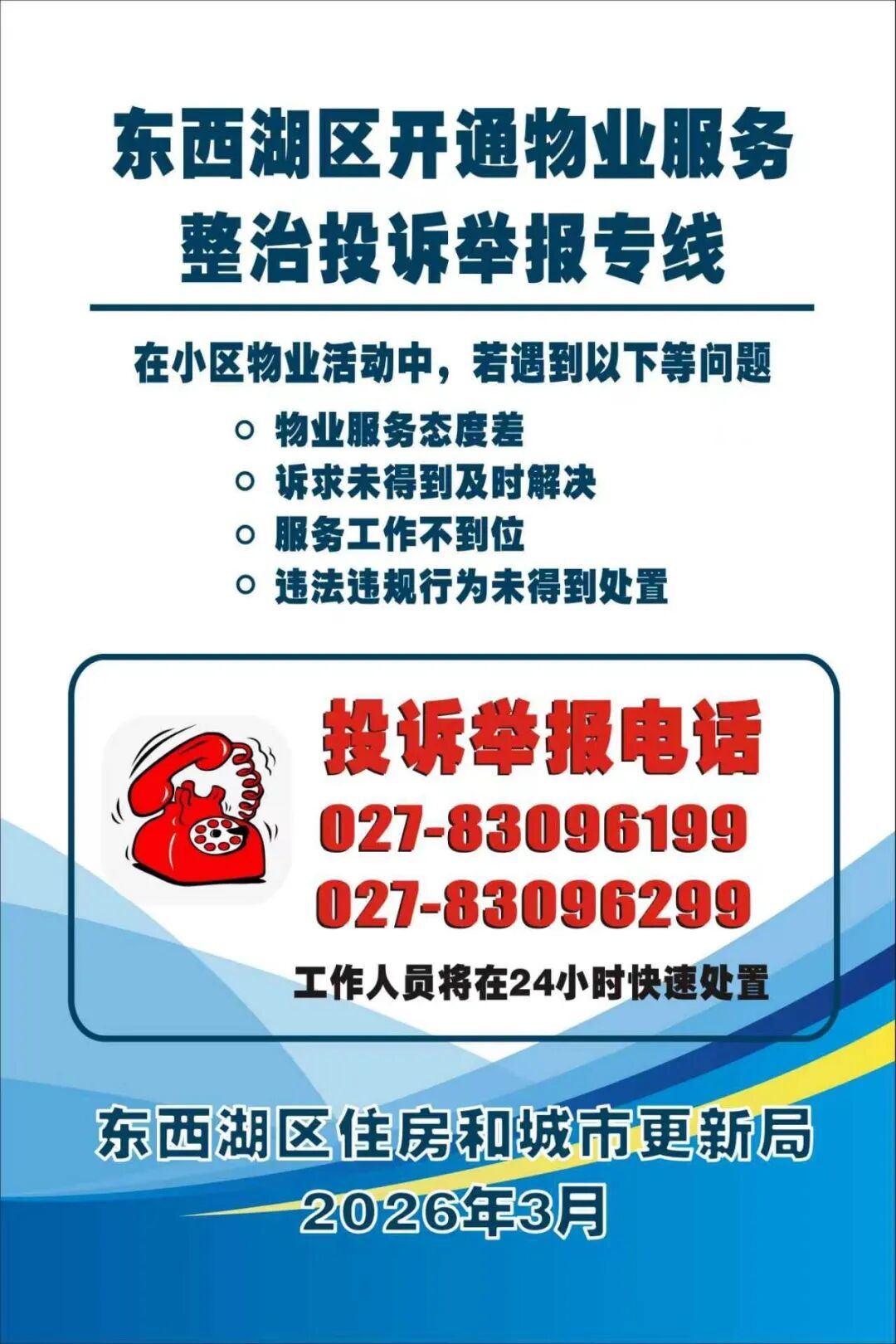 东西湖区住更局相关负责人表示,将以专线开通为契机,进一步畅通群众诉求渠道,强化部门协同与街道联动,推动物业服务从“被动响应”向“主动治理”转变,切实增强群众的获得感与满意度。