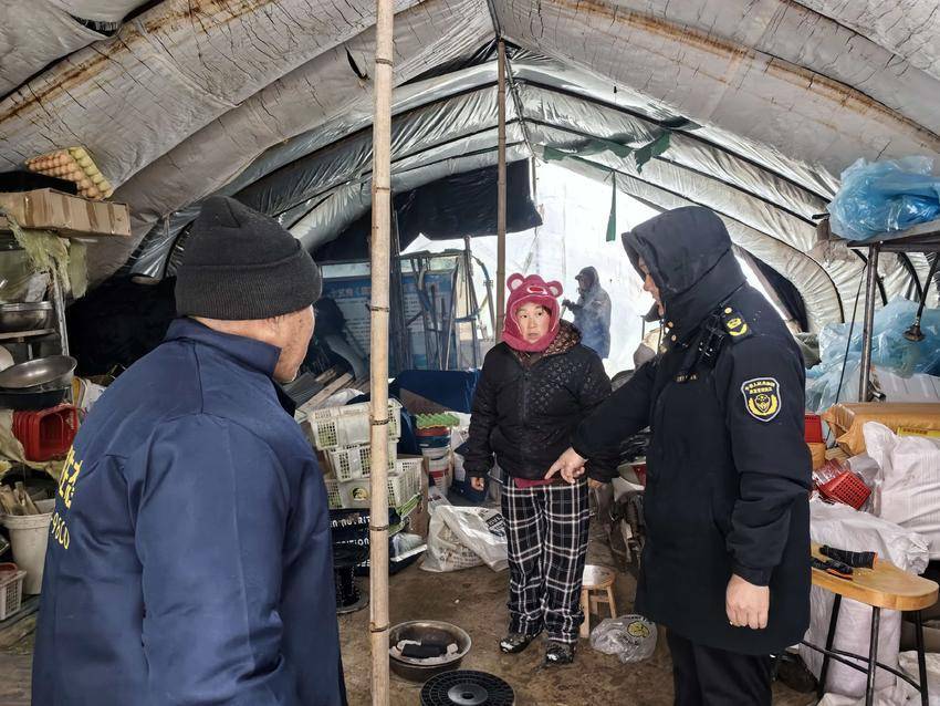 针对大雪天气易引发坍塌风险的重点点位,中队重点排查了物流园区大跨度厂房、户外活动棚、临时搭建物及田间地头大棚等设施。巡查中,开展居民用电用气用火取暖安全宣传和敲门入户提醒,坚决防范一氧化碳中毒事故。同步督促企业备足融雪剂、铁锹、防滑垫、应急照明等物资,完善应急处置预案,确保遇有突发情况能快速响应、有效处置。此次行动累计巡查点位40余处,排查整改各类安全隐患苗头8处,发放防范提醒告知单50余份。