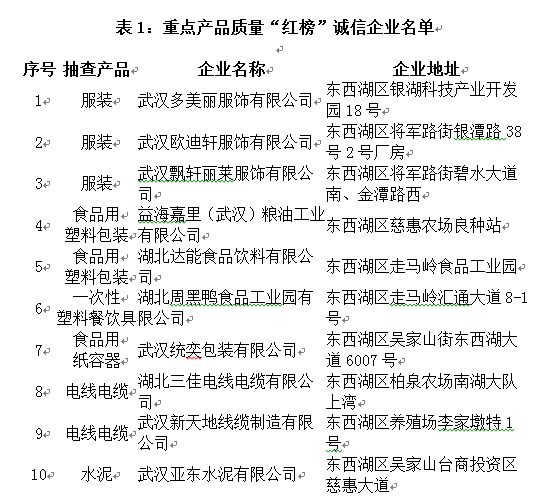 今年,东西湖区质监局以电线电缆、验配眼镜、食品相关产品、建筑材料、纺织服装等产品为重点,大力开展产品质量提升工程,强化企业质量主体责任落实,加强产品质量事中事后监管,企业质量意识、责任意识进一步增强。为加强质量正面引导激励和惩戒失信产品企业,现将2016-2017年上述5类产品企业质量诚信情况名单公布如下: