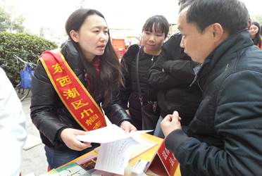 3月3日上午,区法律援助中心与区妇联一道,在吴家山中心广场对面开展“建设法治中国,巾帼在行动”——“三八”维权周大型法律宣传活动。由于今年的“三八”妇女维权活动与我区民营企业用工招聘会同时同地举办,中心布置的法律援助咨询展台还吸引了众多女性求职者前来进行咨询有关劳动者权益方面的问题。