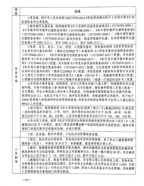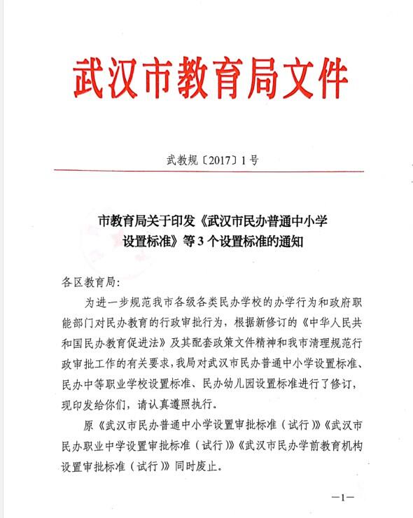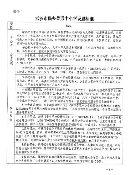 市教育局关于印发《武汉市民办普通中小学设置标准》等3个设置标准的通知