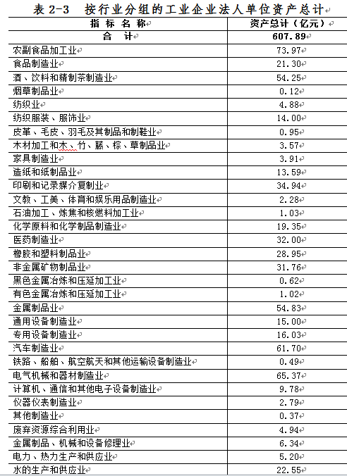 2013年末,工业企业法人单位资产总计607.89亿元,比2008年末增长247.2%(详见表2-3)。