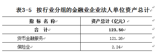 2013年末,金融业企业法人单位资产总计123.50亿元(详见表3-5)。