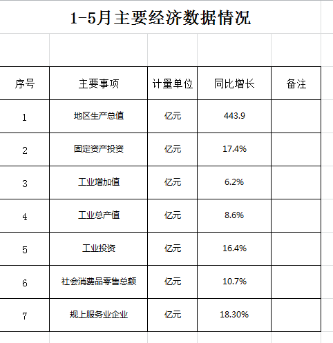 全区主要经济指标(2019年5月)