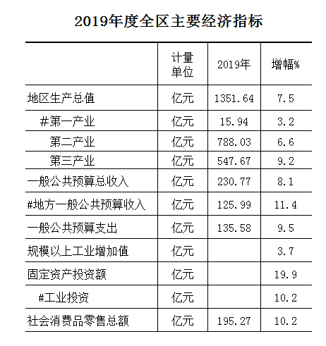 全区主要经济指标(2019年12月)